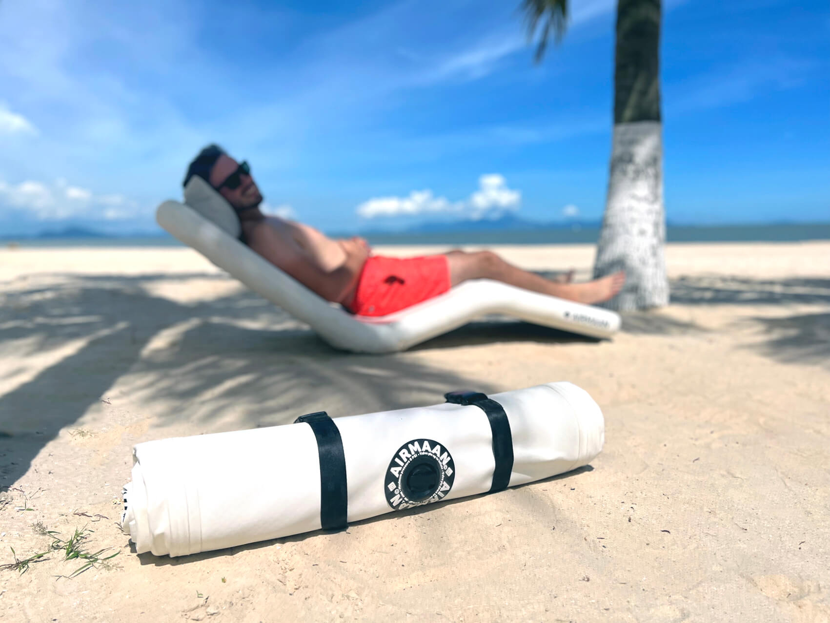 The Z Lounger is a marvel of convenience, inflating in under 30 seconds and seamlessly converting from a compact, portable mat into a luxurious ergonomic sun lounger. Drawing inspiration from the iconic LC4 chaise longue by Le Corbusier, its design exudes both style and functionality. The Z Lounger’s backrest offers a versatile range, from a comfortable 90° sitting position to a fully reclined 180° lounging experience.
